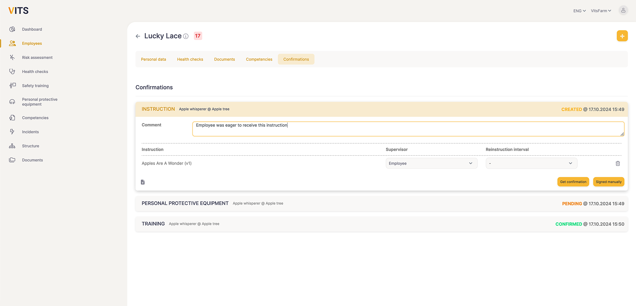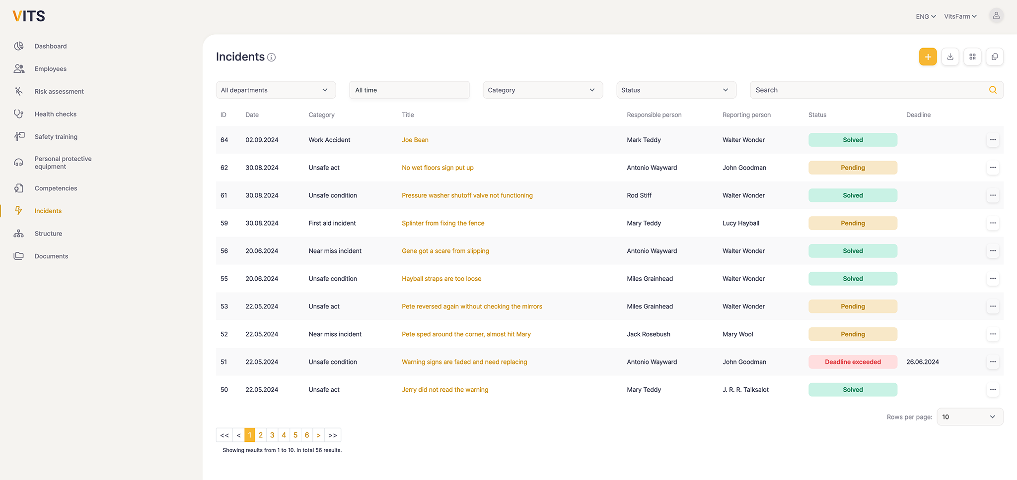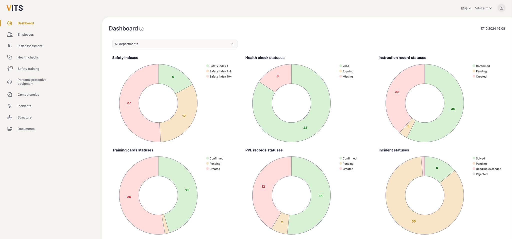 Filling out Excel documents and paperwork takes time. In VITS it is easy to create a risk analysis, do instruction, report incidents, send employees to health checks etc.